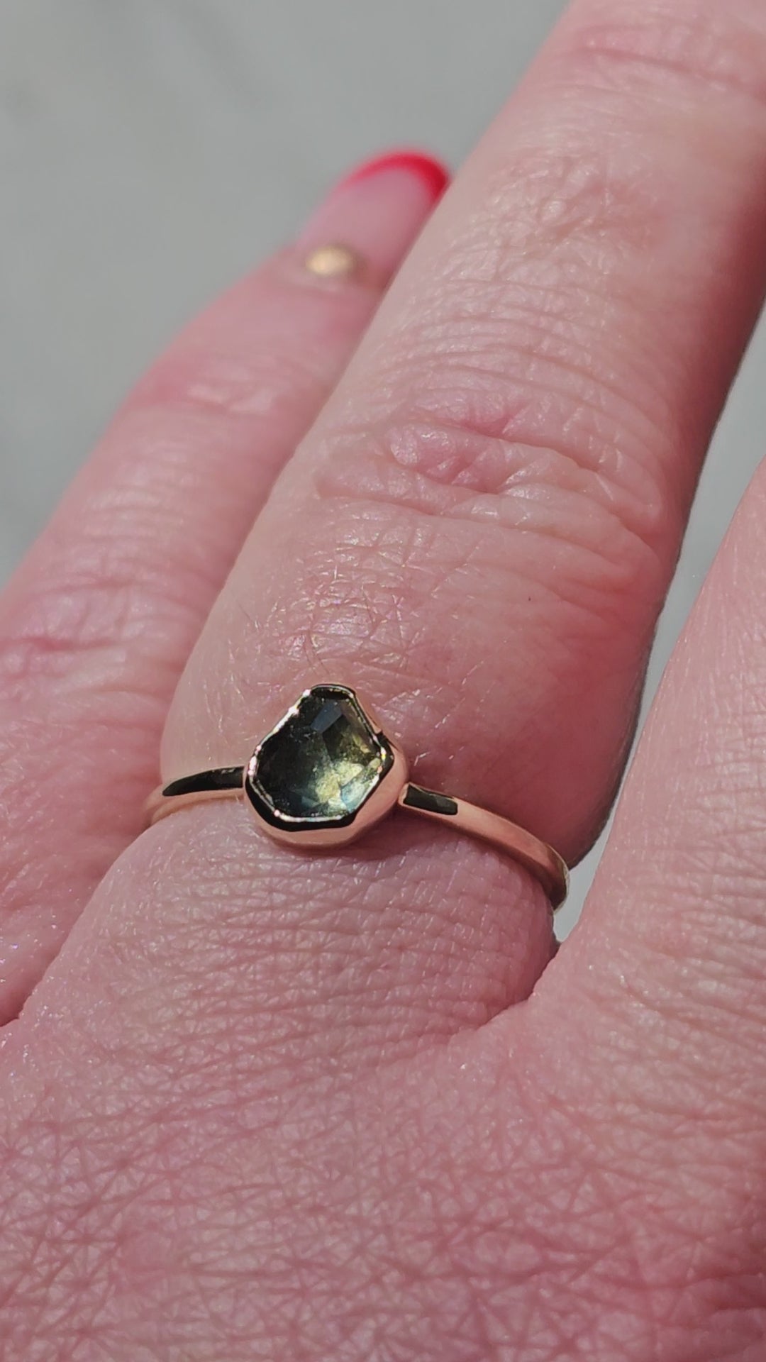 1 Carat Blue/Green/Yellow Hand-Cut Montana Sapphire Ring in 14k Yellow Gold